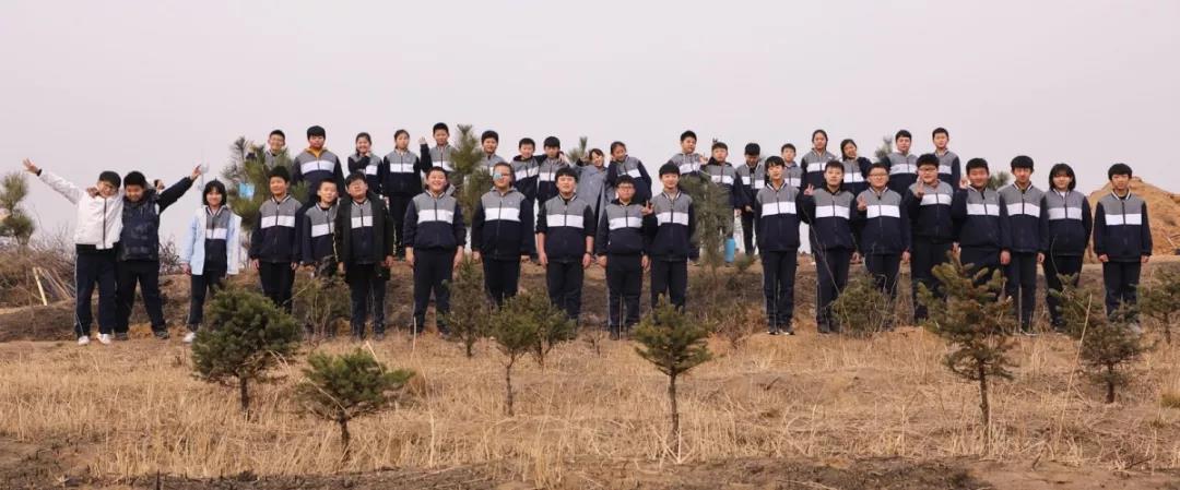 种植一份希望,梦想一片未来。以班级为单位,每班的学生把写有寄语的心愿卡系在了自己栽种的松树上。从学生微笑的脸庞上,我们能感受到他们满满的喜悦和成就感。